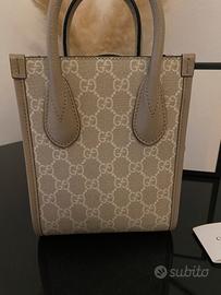 Vengo splendida borsa Gucci Mini Tote in tela GG Supreme con finiture in pelle beige. L’articolo è nuovo, mai indossato, in condizioni impeccabili da boutique.