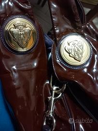 Ottime condizioni interne ed esterne Tracolla inclusa Pelle marrone e vernice Interni pelle viola Numero di codice interno visibile in foto Davvero di classe