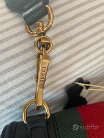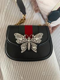 Borsa molto particolare ed elegante in pelle con tessuto classico Gucci e una meravigliosa farfalla gioiello in strass vendo per inutilizzo.