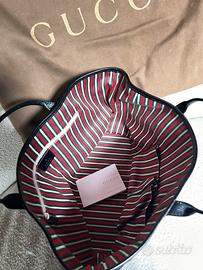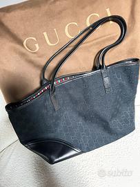 modello originale Tote New Brit in tela GG di Gucci nero, inserti in pelle nessun segno di usura perche mai utilizzata, acquistata presso boutique Gucci qualche anno fa. Rimasta dentro la sua custodia originale. Vendo causa inutilizzo