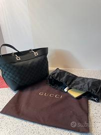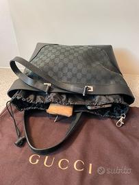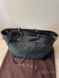 Borsa Gucci in tessuto verde e pelle con organizer porta oggetti richiudibile (non brandizzato).