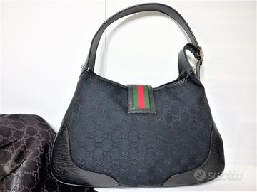 Borsa Gucci originale mod. Jackie in tessuto GG Supreme di colore nero con finiture in pelle.