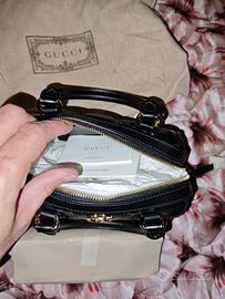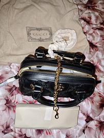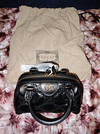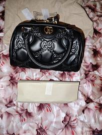 Vendo borsa Gucci originale in pelle nera trapuntata con logo GG dorato sul davanti.