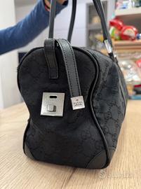 Vendo bellissima borsa Boston di Gucci (bauletto) in tela monogram nera (tela GG) con finiture in pelle nera e hardware in metallo argentato.
