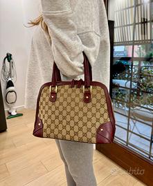 Vendo meravigliosa borsa Gucci modello GG Canvas Dome Satchel, è caratterizzato dal classico tessuto tela GG di Gucci in tonalità beige, impreziosito da finiture in pelle martellata bordeaux e dettagli metallici dorati. Borsa mai indossata pari a nuovo. Dimensioni: 30×21×10 Codice autenticità: 131023-204046