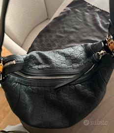 Borsa in pelle gucci nera originale guccissima con dust e codice interno. Modello a spalla Hobo con cerniera. No scambi