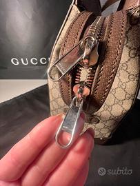 Dettagli in pelle Due manici in pelle Chiusura superiore con cerniera a doppio cursore Tasca interna con chiusura a zip Due tasche piatte interne Hardware in metallo argentato Fodera a contrasto rossa Piedini metallici protettivi sul fondo Larghezza: 37 cm Altezza: 30 cm Profondità: 17 cm