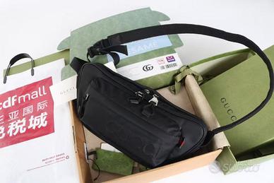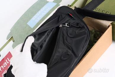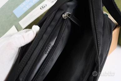 Debuttato nella sfilata uomo autunno/inverno 2024, fonde linee moda e stile sportivo. Questa piccola borsa a tracolla in nylon nero resistente e morbido presenta il logo in rilievo ottenuto con stampa ad alta frequenza, discreta ma raffinata. Dettagli classici includono il nastro rosso-verde frontale.