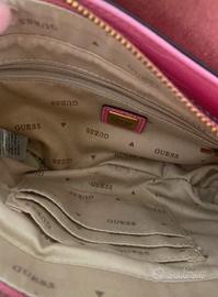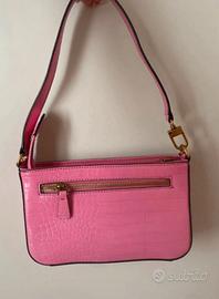 Borsa originale GUESS, colore rosa acceso, con elegante effetto coccodrillo.