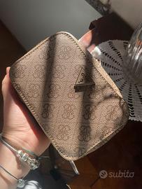 Elegante e pratica borsa firmata Guess, realizzato in tessuto effetto canvas con stampa monogram all over.
