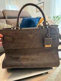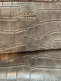 Borsa Guess modello Cate originale dotata di sacchetto, in ecopelle grigia stampa cocco. Due manici per portarla a mano e tracolla lunga per indossarla a spalla o a tracolla. Ricevuta in regalo e mai usata, ottimo stato di conservazione