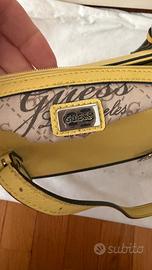Borsa Guess shopper color giallo con manici allungabili da portare a spalla o a mano. Internamente perfetta con una tasca ampia con chiusura a zip e altre 3 porta documenti o cellulare. Chiusura borsa con cerniera, bracciale amovibile color argento. Angoli perfetti un pochino sporca sul fondo