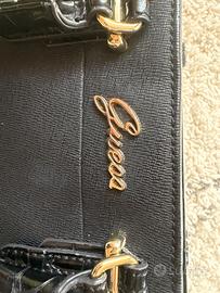 Guess, Guess vintage, Borsa Guess, Borsa nera, Borsa a mano, Borsa elegante, Borsa piccola, Borsa donna, Logo dorato, Borsa rigida, Accessori donna, Borsa classica, Vintage bag, Designer bag, Guess originale