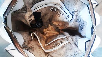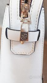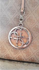 Borsa GUESS da donna ORIGINALE, color beige, due tasche laterali capienti con chiusura magnetica, vano principale centrale con tre tasche interne di cui una con zip. Logo pendente in metallo.
