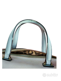 Borsa bauletto Guess azzurro e bianco. Originale. Usata, ha diversi segni di usura sui manici e sui ganci delle zip.