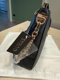Vendo borsa ORIGINALE e NUOVA della Guess Colore nero con tracolla a spalla e catena dorata Il prodotto ha le pellicole, il cartellino e la dusta bug. Misure: 30x9x25h Cosi composta: - 1 vano con chiusura a calamita - 2 vano centrale capiente con 2 taschini e un’altra tasca con chiusura a cerniera. - ultima tasca posteriore con chiusura a cerniera Possibile consegna a mano in zona Torino Nord