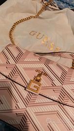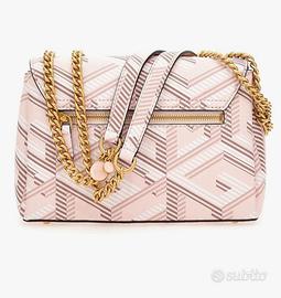 Vendo borsa Guess originale Montréal convertible crossbody flap taglia unica misure 24.8x 8.3x 15.2 cm nuova , usata una volta sola. Colore logo rosa pallido