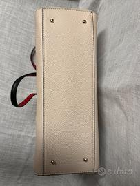 La borsa è caratterizzata da un'elegante pelle sintetica martellata nel ricercato colore Stone Multi (un neutro molto versatile), con raffinati manici a contrasto nero e rosso che le donano un tocco unico e moderno.