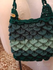 borsa Gufo crochet sui toni del verde, foderata in cotone, chiusa con bottone ricoperto. mis. cm. 25x21x6