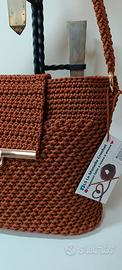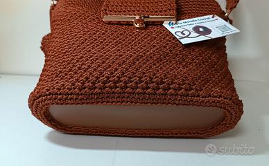 RUGGINE Bag di medie dimensioni punto econocciolina, punto basso e termico per il manico fondo ecopelle, chiusura girello, moschettoni anello naturalmente tutta foderata a mano