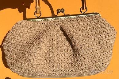 Raffinata borsa artigianale realizzata a mano con cordino intrecciato impreziosito da filo dorato, che dona una delicata lucentezza ✨ Il colore beige neutro la rende estremamente versatile, perfetta sia per outfit eleganti che per look quotidiani curati. 🔹 Dettagli: Lavorazione handmade di alta qualità Cordino intrecciato con riflessi dorati Struttura capiente e ben definita Chiusura in metallo stile vintage Manico rigido in bamboo Fondo rigido per maggiore stabilità Pezzo unico (non industriale) Perfetta per occasioni speciali, eventi o per chi ama distinguersi con accessori eleganti e originali 💫 Ottima anche come idea regalo.
