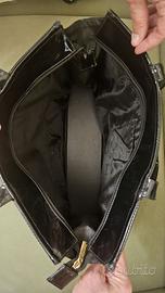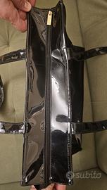Borsa Harrods PVC nera lucida con logo oro
