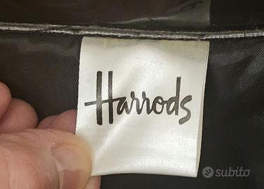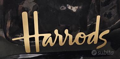Elegante borsa Harrods in PVC nero lucido, con il caratteristico logo dorato. - Materiale: PVC lucido - Colore: Nero con dettagli oro - Tasca interna con zip