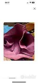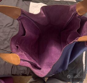 Borsa in pelle viola con manici beige di Cruciani. Modello grande.