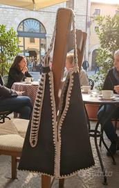 Realizzata internamente a mano. Stile Hobo giapponese di tendenza Nuova con cartellino. Borsa in vera pelle e uncinetto. Made in Italy