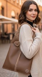 Borsa in vera pelle e uncinetto