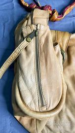Descrizione: Iconica borsa hobo firmata Collection Privèe,realizzata in pelle morbidissima color miele con tracolla in autentica seta (ricavata da una cravatta, dettaglio unico e artistico). Ampia e capiente (40×30×12 cm), con tracolla lunga 70 cm, fodera interna perfettamente integra e tutte le cerniere funzionanti. Un pezzo raro e dallo stile boho chic, perfetto per chi ama moda hippy, urban e vintage di qualità. Ideale come borsa da collezione o per look cool e sofisticati. Leggere imperfezioni nel colore, date dal tempo, come da foto.