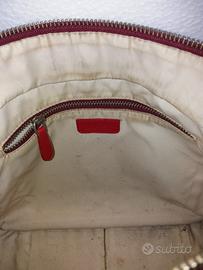 Borsa Hogan originale in pelle ecologica rossa e inserti bordò, possibilità di tracolla lunga o corta, usata pochissimo, in buone condizioni, lievi segni d'usura, grande tasca esterna frontale, con chiusura, tasca esterna laterale, fodera interna lavabile con due tasche di cui una con cerniera.
