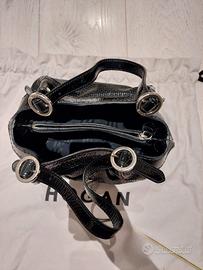 mini bag HOGAN in pelle nera verniciata con accessori acciaio