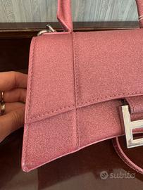 Borsa Balenciaga originale, modello Hourglass in versione rosa glitterata, elegante e iconica.