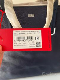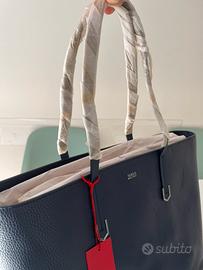 Vendo elegante borsa shopper HUGO BOSS da donna, colore blu navy, realizzata in pelle martellata di alta qualità.