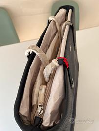 Interno spazioso con tasca centrale con zip e scomparti laterali. Chiusura superiore con bottone magnetico. Manici doppi per portarla a spalla o a mano