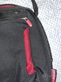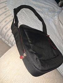 Colore nero e rosso. Mai utilizzata. Tracolla regolabile, tantissime tasche interne. Molto resistente. Brand Belkin. Misure 36 × 28 cm.