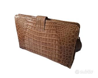 Borsa vintage in pregiata pelle di coccodrillo color cognac. Larghezza 35 cm - Altezza 23 cm - Profondità 7,5 cm