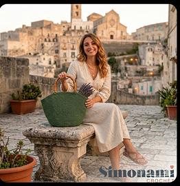 Ciao! ✨ Ti presento la mia ultima creazione, nata tra i vicoli magici dei Sassi di Matera. L'ho finita proprio oggi e sono follemente innamorata del contrasto tra questo Verde Bosco intenso e la pietra chiara della mia città! L'uncinetto per me è una vocazione: amo creare pezzi unici che abbiano un’anima. Questa borsa l'ho immaginata proprio così: boho-chic, robusta e pronta per l'estate. Perché è speciale: Materiale Premium: Lavorazione fitta e sostenuta che mantiene perfettamente la forma, anche da piena. Dettagli Naturali: I manici sono in vero bamboo, eleganti e resistenti, perfetti da portare a mano o all'incavo del braccio. Capienza Sorprendente: Come vedi dalle foto, l'interno è spaziosissimo! Ci stanno comodamente agenda, occhiali da sole, portafoglio grande e tutto il necessario per una giornata fuori casa. Info tecniche per te: Misure: circa 35x22 cm (Base di 10 cm: è una vera "shopping bag"). Stato: Nuovissima, appena uscita dal mio laboratorio creativo! ✨ Stile: Perfetta per outfit estivi, look total white o per dare un tocco artigianale ricercato alle tue giornate. Essendo un pezzo unico realizzato a mano come hobby, ci tengo tantissimo che chi la riceve senta la cura che ho messo in ogni punto. Scegliendo il fatto a mano, sostieni il valore della creatività italiana. 🧶 Se hai curiosità o vuoi vedere altri dettagli tra i vicoli materani, scrivimi pure in chat! Tag: #borsauncinetto #handmade #matera #bambootote #verdebosco #artigianatoitaliano #bohochic #borsaestate #madeinitaly #pezzounico