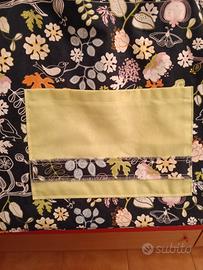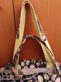 borsa in cotone pesante, 55x30 H 40. Fondo in compensato ricoperto di stoffa e sfoderabile x il lavaggio. Doppi manici a mano e a spalla, tasca esterna. ideale per il trasporto biancheria stirata. fatta a mano, mai usata