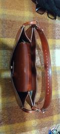 Borsa selleria Boldrini di ottima fattura a soffietto. Rifiniture in ottone e cuciture a cordoncino. Completamente in cuoio. Manico 53cm Dimensioni 33x20. Borsa molto particolare e singolare. Alcuni segni di utilizzo. Una volta cerata si attenuano.