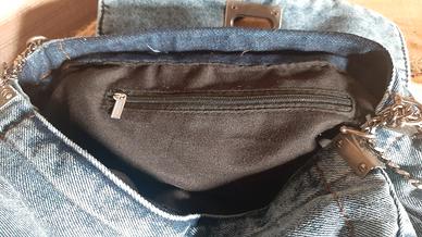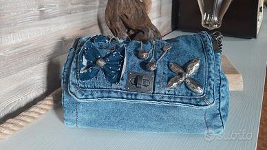 Borsa a tracolla in denim, un accessorio unico e alla moda.