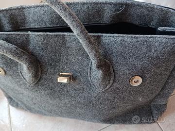 borsa fornita anche di tracolla. misure: lunghezza 39 cm, larghezza 15 cm, altezza 25cm. ha due ampi manici x mettere sulle braccia o spalla. ha una tasca esterna e una interna. ha 2 automatici laterali per essere ancora più spaziosa. si chiude con 2 automatici frontali e una chiusura centrale. mai usata