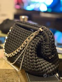 Clutch da 19 cm realizzata ad uncinetto in fettuccia color nero