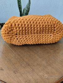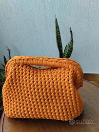 borsa clutch in fettuccia realizzata con la tecnica dell' uncinetto