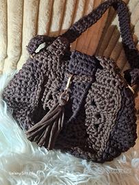Borsa fatta a mano in fettuccia stile Croket, molto comoda e capiente. Rifinita e ben lavorata ha anche un piccolo portachiavi abbinato.