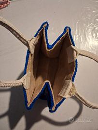 NUOVA borsa in iuta rivestita con mattonelle granny fatta a mano con portaauricolari abbinato: