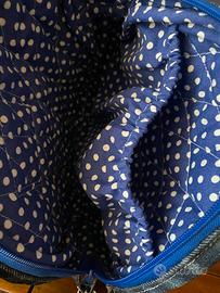 Borsa tonda con jeans di recupero, con cinta. Mai utilizzata, fatta a mano. Dimensioni 25 cm circa di diametro.