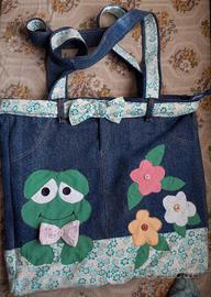 Borsa in jeans con applicazione fatta a mano misure 38×36h×4con zip a due direzioni
