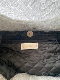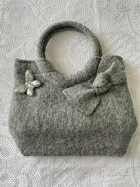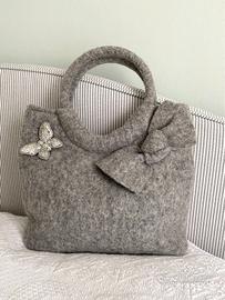 Borsa in lana cotta grigia Accessorize venduta con spilla farfalla colore argento Accessorize. In ottime condizioni. Con taschina interna con cerniera e chiusura con poussoir. Dimensioni: larghezza: 33 cm, h. 21 cm e manico circolare di diametro 15 cm